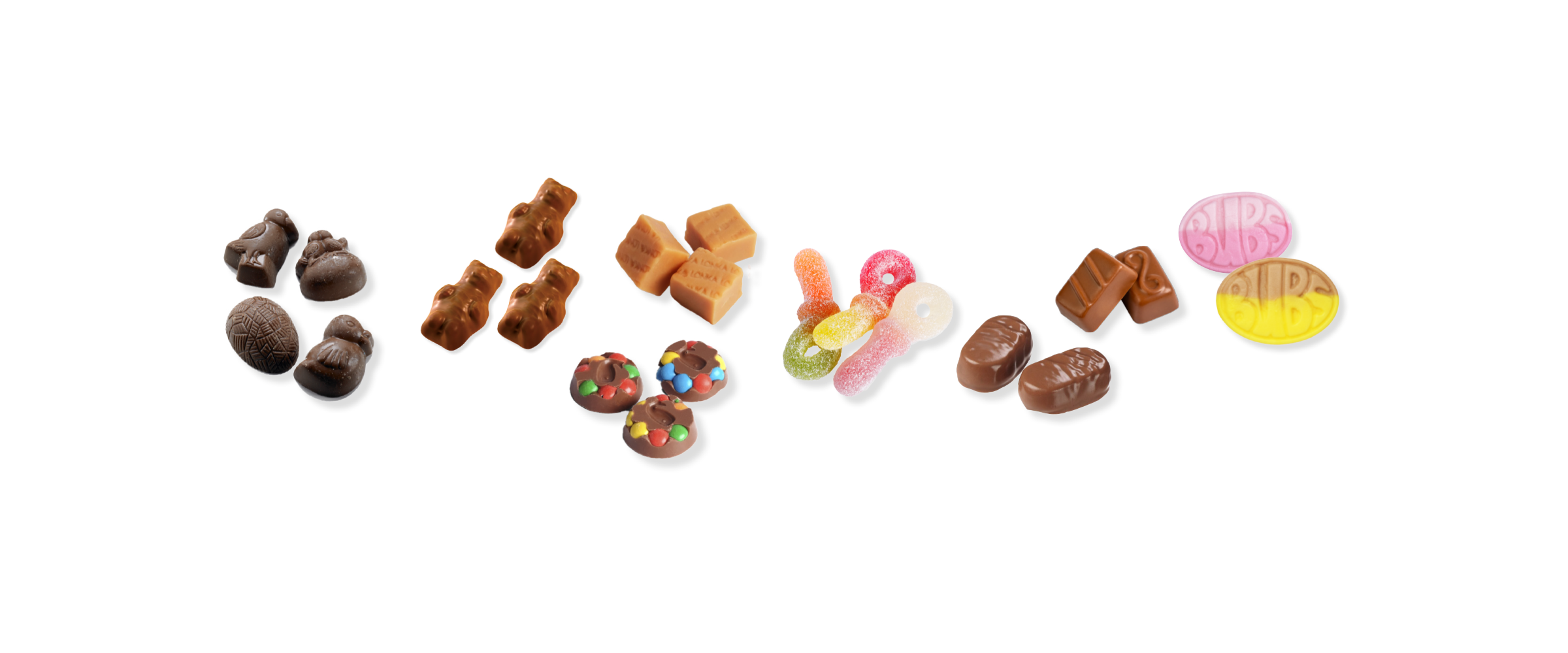 Fylt med deilig påskegodt som bubs, sjokoladefamilien, bamsemums, smørbukk, fudge, hobby, festkaramell, lakrisbåter, spesial, fargepaletter mm.
